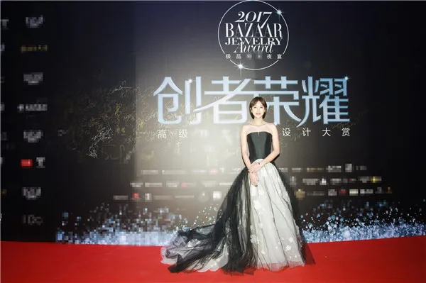 昨日,由時尚集團《芭莎珠寶》雜誌發起並主辦的 “2017‘創者榮耀’極品珠寶夜宴”在北京隆重上演。張儷身着黑色抹胸紗裙,佩戴HEARTSONFIRE鑽石珠寶亮相紅毯,花朵點綴的薄紗裙自帶仙氣,完美秀出美麗鎖骨和蝴蝶背。優雅禮服和俏皮短髮巧妙融合,清淡的初戀粧容,宛若會發光的小仙女。