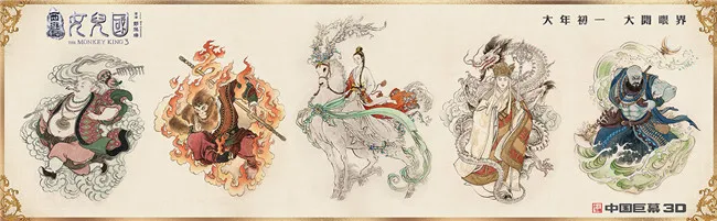 五主演開運海報用中國傳統工筆畫的方式,生動描繪了《女兒國》這一西遊經典愛情故事中的五個主要人物,線條細膩且藴含古風古韻。五大主演的特徵和氣質躍然紙上惟妙惟肖,特別是純真的女兒國國王,彷彿下一秒就會騎着神鹿從畫中一躍而下。唐僧慈眉善目,清秀俊朗的面龐深情款款;孫悟空駕火雲前來,凌厲的目光戰鬥氣息濃郁;八戒腳下生風,亦正亦邪的眼神勾搭意味十足;沙僧健碩的肌肉荷爾蒙爆棚,盡顯型男本色。眾人粉墨亮相颯爽英姿顯露無遺,鋪就成一幅古意盎然的女兒國傳世畫卷。李雲中的工筆畫作筆鋒細膩温婉,畫面中流露的意境與神韻,讓這一段《西遊記》中的經典愛情故事更加令人期待。《西遊記女兒國》將是2018年春節檔最中國風也是最適合情人節的魔幻鉅製,在美輪美奐的女兒國中一段刻骨銘心的經典愛情故事即將震撼上演。