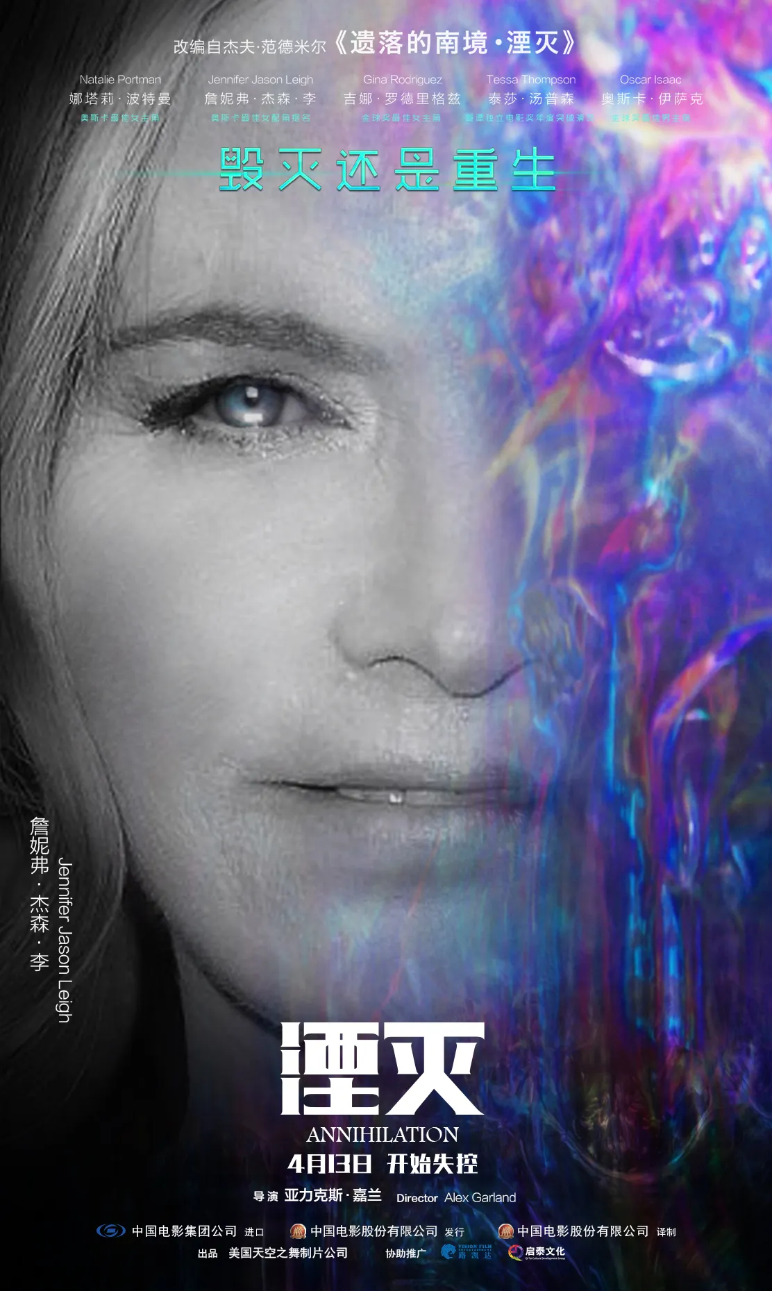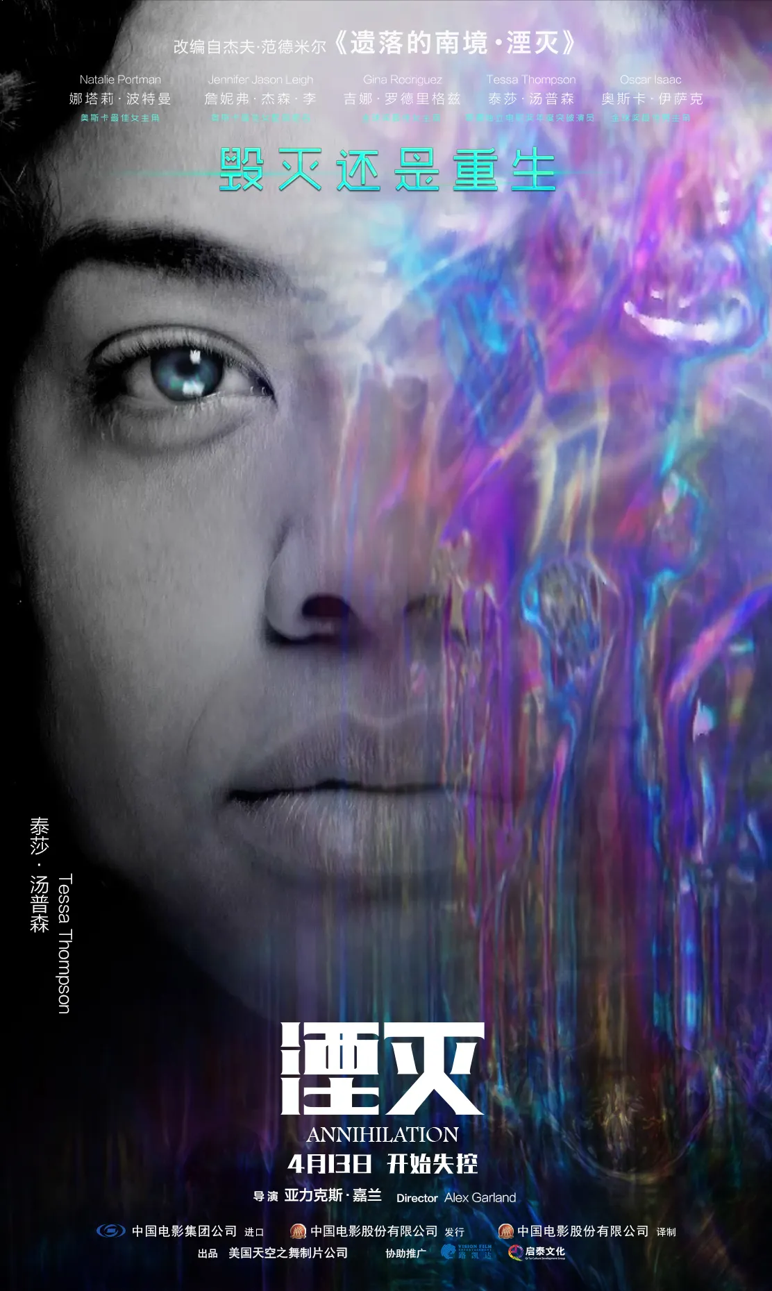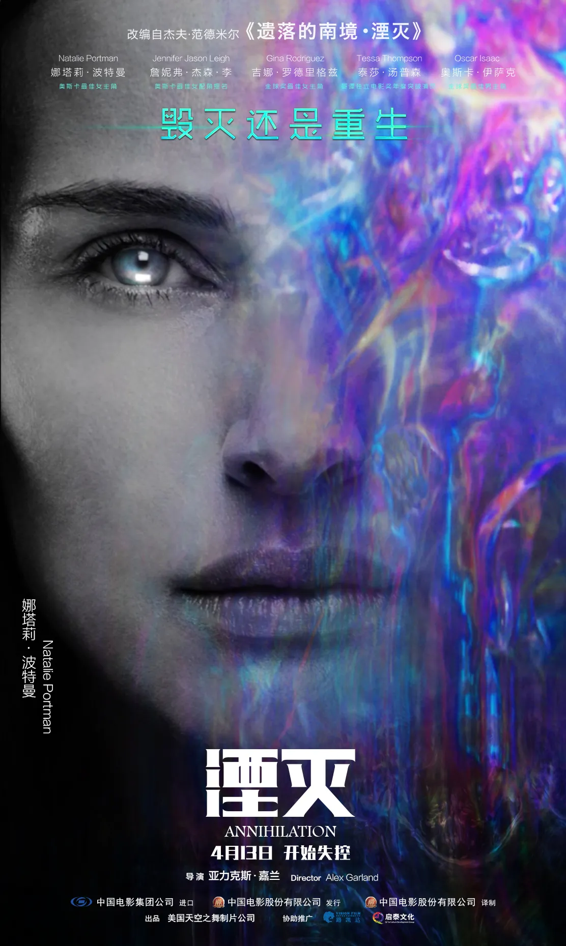 電影《湮滅》由亞力克斯·嘉蘭執導、奧斯卡影后娜塔莉·波特曼領銜好萊塢全明星陣容出演,將於4月13日全國公映。