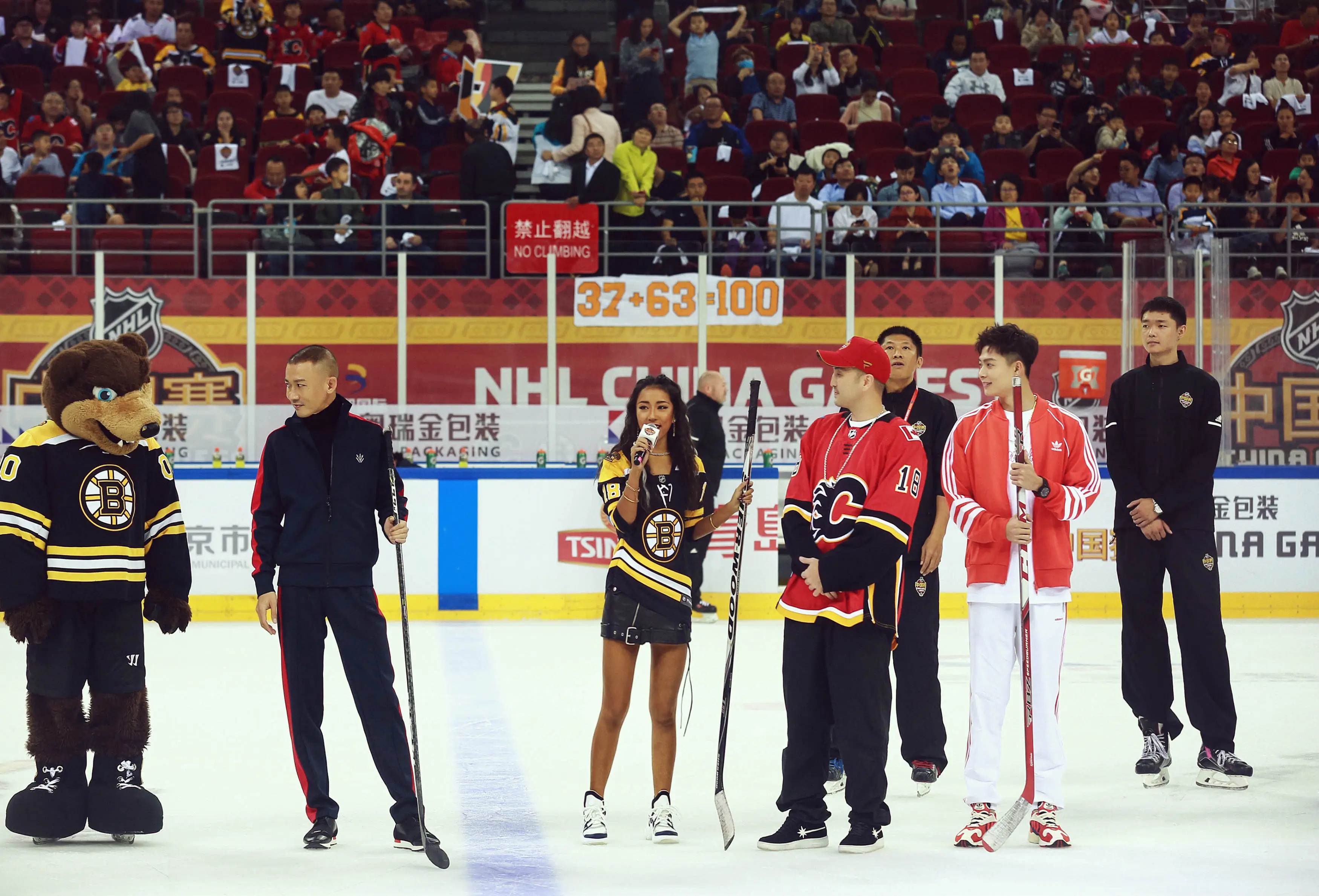 星關係9月21日訊 9月19日,2018年NHL中國賽第二場在北京凱迪拉克中心成功舉辦,同樣是波士頓棕熊隊與卡爾加里火焰隊展開激烈交鋒,吉克雋逸在現場為大家帶來精彩演出。