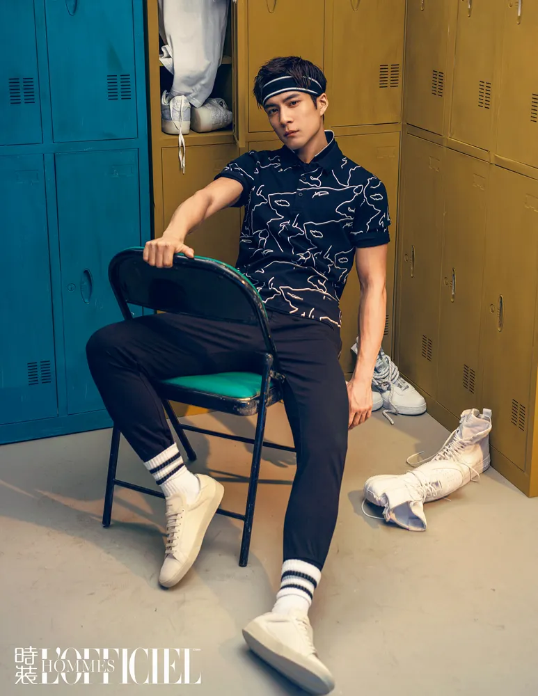 近日,韓東君為某雜誌拍攝的封面大片曝光,他或着紅色衞衣搭配襯衫領個性十足,或着黑色印花T恤搭配小白鞋盡顯活力,多款髮帶使得整體造型更具潮範兒,休閒又時髦,玩味十足不失質感,盡顯大男孩兒的硬朗與活力,頗具魅力