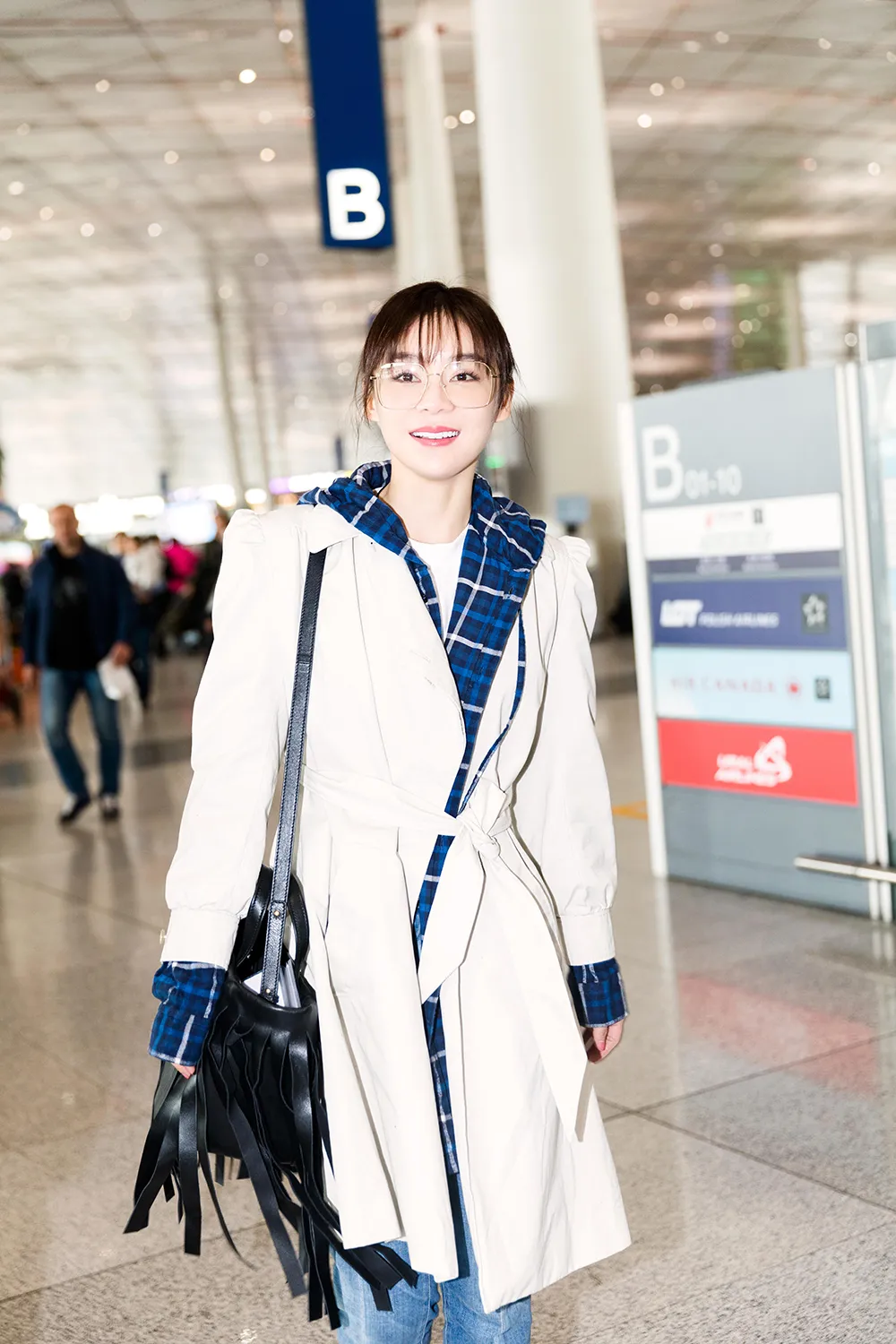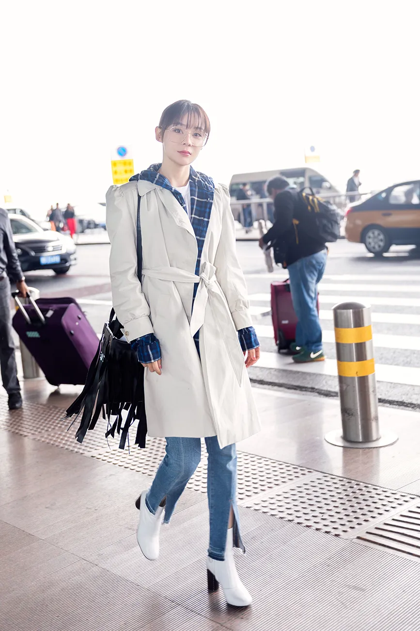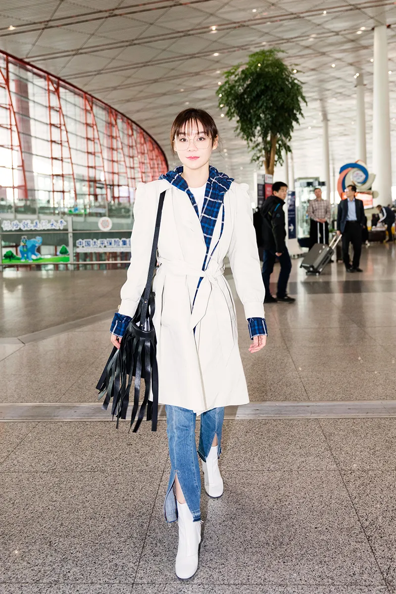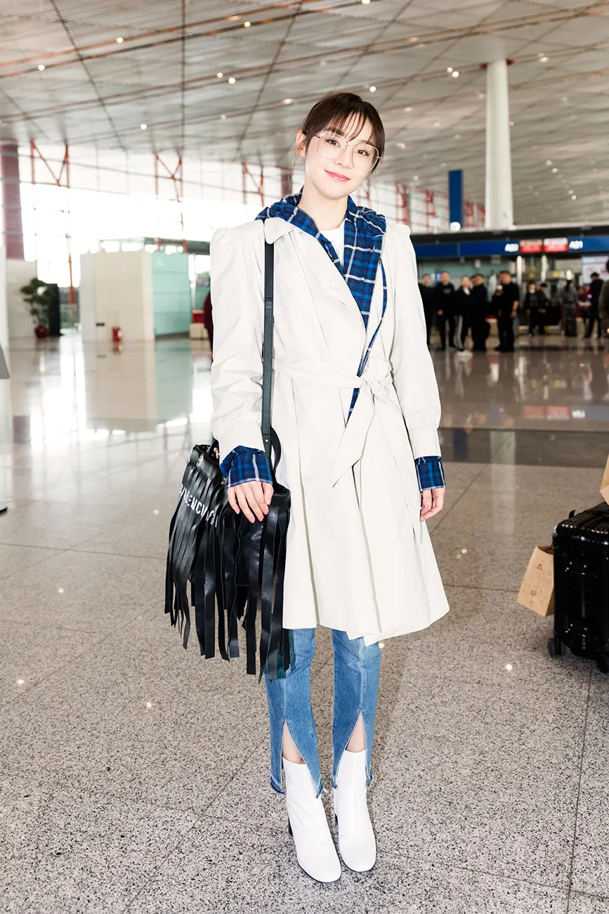 袁姍姍今日現身機場,黑色流蘇包搶鏡,和劉海造型蜜汁呼應,洋氣又可愛!藍格襯衣外搭米色風衣,腳踩小白靴,整體造型時髦感爆棚。而仔褲的開叉設計既彰顯個性又凸顯好身材。雖然近期一直奔波忙碌,但是袁姍姍滿臉洋溢着好心情。網友:好喜歡姍姍元氣滿滿的自信笑容。