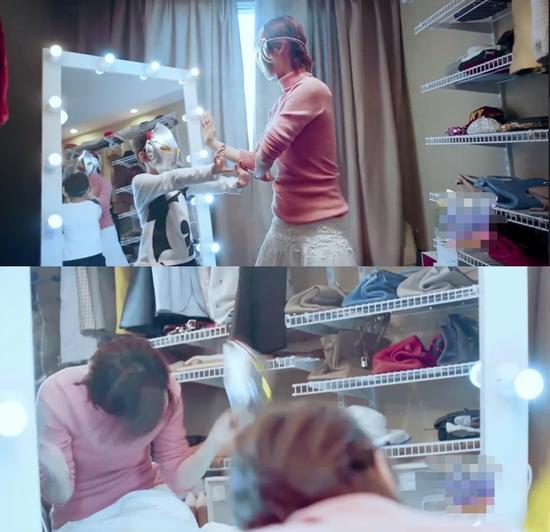 從視頻中可以瞥見黃聖依的豪宅內景。廚房寬敞明亮且整潔,可以看出黃聖依鮮少下廚;客廳採用奢華的歐式裝修風格。一面化粧落地鏡反射出黃聖依一衣架的奢品衣包,其中不乏同款不同色的包包。