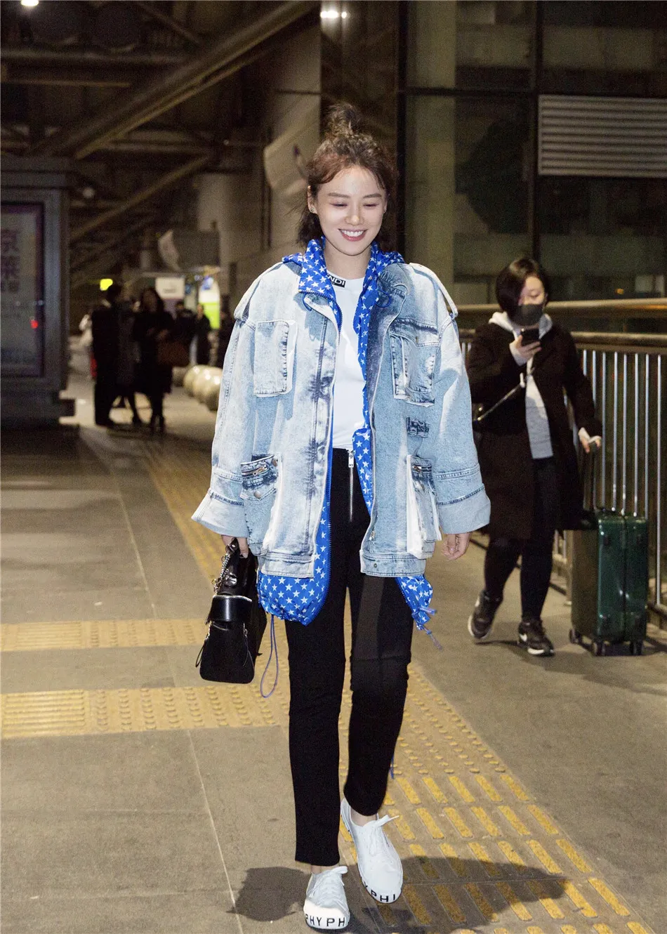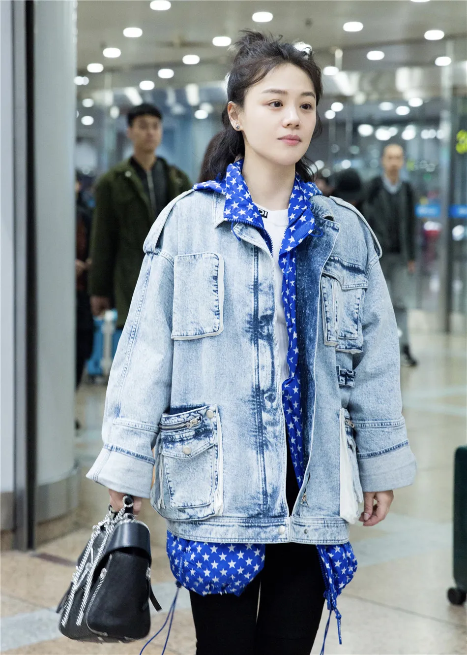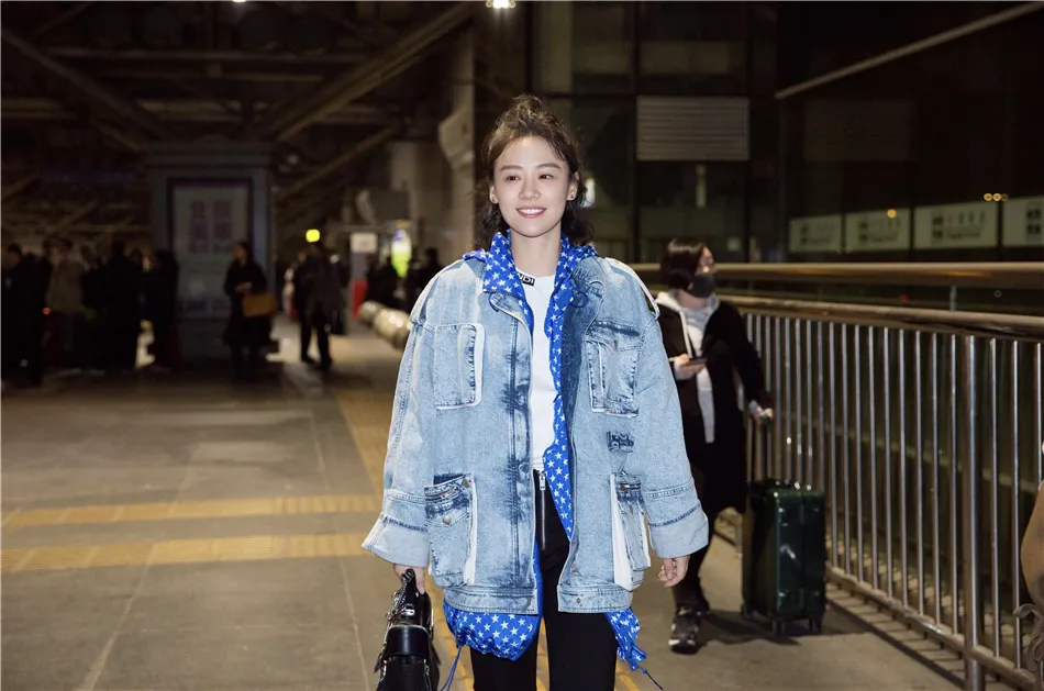 北京時間20日凌晨,馬思純結束長沙《我是大偵探》節目錄制,抵達北京,身穿淺色牛仔外套疊穿白色T恤和五角星印花藍白帽衫,搭配黑色西裝長褲和小白鞋,手拎黑色手提包,簡約之中又不失個性,工作滿滿的狀態下皮膚依然白皙不顯疲憊,大方微笑不懼鏡頭。