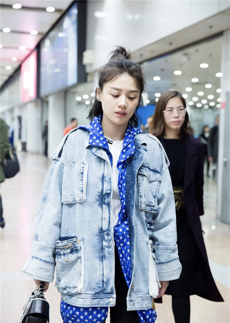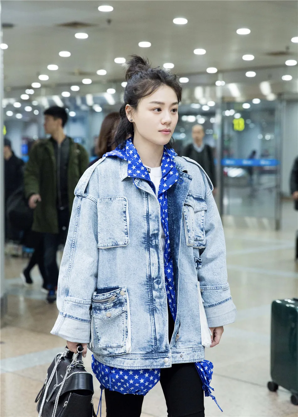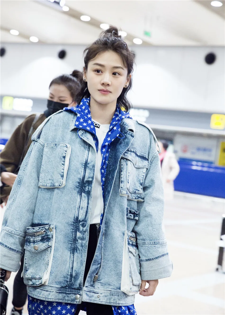 北京時間20日凌晨,馬思純結束長沙《我是大偵探》節目錄制,抵達北京,身穿淺色牛仔外套疊穿白色T恤和五角星印花藍白帽衫,搭配黑色西裝長褲和小白鞋,手拎黑色手提包,簡約之中又不失個性,工作滿滿的狀態下皮膚依然白皙不顯疲憊,大方微笑不懼鏡頭。